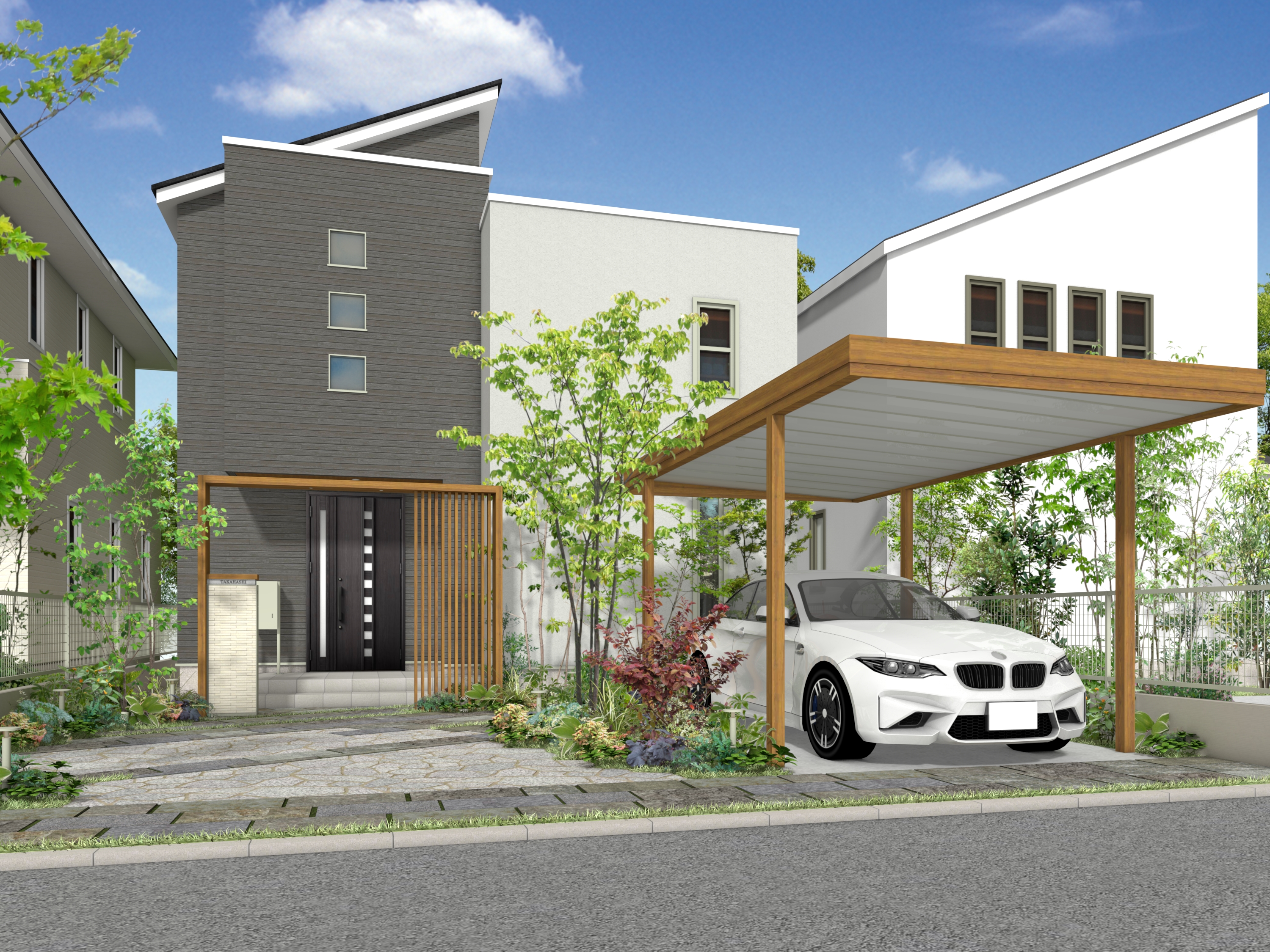 玄関アプローチとは、門から玄関までの通路スペースのこと。プランニングによって、日々の使い勝手はもちろん、住まいの印象を左右する大切な空間です。しかし道路から玄関までの距離が短い事も有りますね。上記プラン例 参考価格エクステリア部分80万円+植栽工事部分20万円 合計100万円程度。