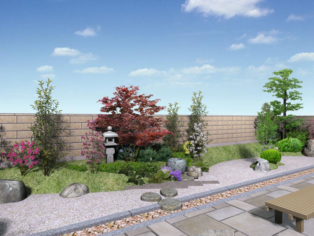 天候や四季、そして一日の太陽の移り変わりで表情を変える和庭。上記プラン例参考価格 作庭部分200万円万円程度。